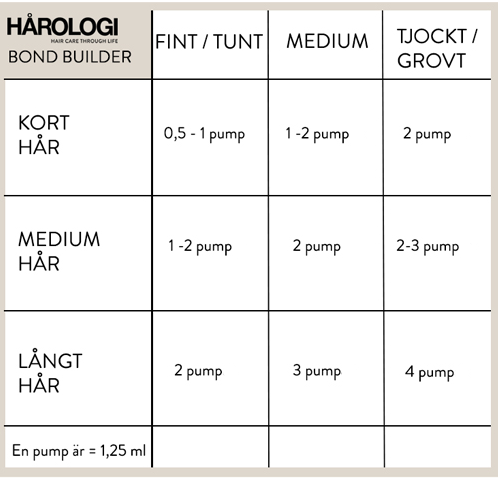 STEG 1 – Begynn med å finne ut hvor mange pump som passer til din hårmengde og hårkvalitet ved hjelp av tabellen.